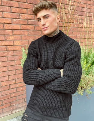 Asos Design Heavyweight Fisherman Rib Turtleneck Sweater In Black Asos